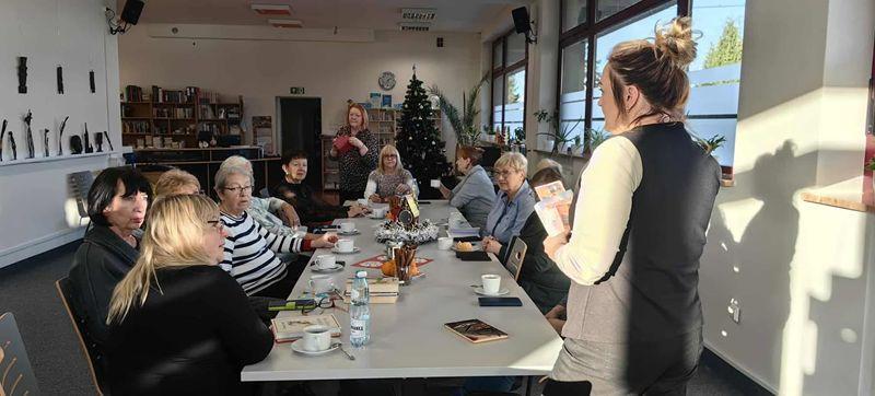 Wczoraj odbyło się ostatnie w tym roku spotkanie Dyskusyjnego Klubu Książki podsumowujące miniony rok. Każda z klubowiczek przygotowała kilka tytułów książek godnych polecenia. Wśród pozycji wartych przeczytania wymieniono między innymi: „Spóźnionych kochanków” Williama Whartona, „Miłość niejedno ma imię” i „Moulin Rouge” Pierra La Mure, „ Córki Wawelu” Anny Brzezińskiej, „Krzywdy przeszłości” Agnieszki Lewandowskiej-Konkol. Nasze klubowiczki czytają i rekomendują zarówno klasykę- Sienkiewicza czy Kraszewskiego jak i współczesną prozę - Olgę Tokarczuk, Agnieszkę Janiszewską, Lucindę Riley. Zaproszony gość – Joanna Gerowska ze Szkoły Podstawowej nr 1 w Sulechowie zaproponowała książkę „Kot, który nauczał zen” Jamesa Norburego. Jest to filozoficzna opowieść o tym, że największa mądrość jest w nas, musimy ją tylko odkryć. Jej dodatkowym atutem jest piękne wydanie, pełne ilustracji, które przynoszą spokój. Jest to pozycja, która świetnie nadaje się na prezent świąteczny. Na zakończenie spotkania moderatorka Oliwia złożyła paniom życzenia z okazji zbliżających się świąt Bożego Narodzenia i zaprosiła na kolejne spotkanie.
