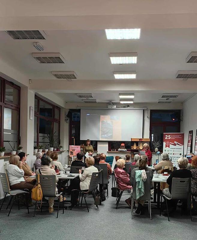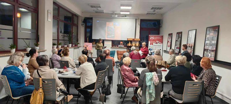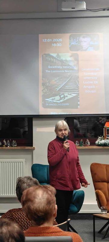 12 stycznia w Czytelni dla Dorosłych odbyła się promocja wierszy Lucie Di Angeli-Ilovan. Zebranych gości wśród których byli: Janina Karaszewska -przyjaciółka poetki, Jolanta Pytel - prezes Stowarzyszenia Jeszcze Żywych Poetów i Zygmunt Rybczyński - wydawca tomiku, powitała dyrektor biblioteki Teresa Zawalna. Pani Janina Karaszewska odczytała list od autorki, która ze względu na odległość (mieszka w Portland - USA) i pewne problemy zdrowotne nie mogła osobiście uczestniczyć w spotkaniu. Pani Jolanta Pytel opowiedziała o genezie powstania i wydania tomiku poezji, a przyjaciółka autorki przedstawiła fotografie ilustrujące jej życie i twórczość. Wśród zdjęć były także te ze spotkania autorskiego w naszej bibliotece promującego powieści „Żniwo gniewu” i „Zapisane w gwiazdach” z roku 2018. Kilka wierszy z tomiku „ŚWIETLISTY NASZYJNIK” przeczytała Anna Baranowska. Wydarzenie pełne emocji, wzruszeń i pięknego słowa odbyło się w ramach Dyskusyjnego Klubu Książki dla dorosłych.